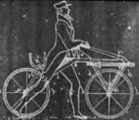 Um zum Anfang der Geschichte des Zweirades zu kommen, müssen wir das Rad der Geschichte bis ins Jahr 1817 zurückdrehen. Im kurpfälzischen Mannheim entwickelte der Forstmeister Karl Freiherr Drais von Sauerbronn die nach ihm benannte "Draisine", eine lenkbare Laufmaschine, die noch durch das Abstoßen mit den Füßen vom Erdboden bewegt werden musste. (Bild links) |